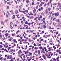 Another uncommon type of MM is its small cell form, a variant of epithelial MM.121,159 It is only rarely seen in “pure” form and usually includes a portion of tumors with other histologic patterns. This lesion is composed of compact round cells with high nuclear-to-cytoplasmic ratios, oval nuclei with dispersed chromatin, variably discernible nucleoli, and scant amphophilic cytoplasm (Fig. 20-34). As such, it is morphologically similar to several other malignant small cell/basaloid neoplasms, including basaloid carcinoma, high-grade neuroendocrine carcinoma, small cell melanoma, small round cell sarcomas, and non-Hodgkin lymphomas.