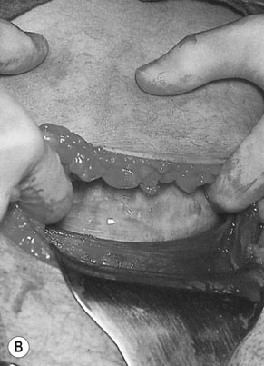 Profuse haemorrhage may sometimes occur from vaginal and perineal lacerations and bleeding from these sites should be controlled as soon as possible. Venous bleeding may be controlled by compression alone but arterial bleeding will require vessel ligation. Vaginal wall haematomas may occur in one of two sites (Fig. 12.17):