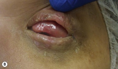 Complications related to the preparation of the globe include the possibility of perforation of the globe during the suturing process. If the perforation cannot be repaired with sutures, a patch graft should be performed in order to avoid hypotony and endophthalmitis. Close observation of the mucosa during the early postoperative period is important to identify cases of necrosis. If a high suspicion for necrosis develops, the mucosa should be cultured in order to rule out an infectious process (Fig. 53.5).