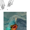 Figure 3-2 shows the location of each member of the operative team. The operating surgeon stands facing the patient’s axilla. The first assistant stands just behind the operative shoulder, facing the surgeon. If available, a second assistant stands on the opposite side of the operating table from the surgeon. The position of the second assistant serves dual purposes: first, it allows the assistant to perform retraction without “crowding” the surgeon, and second, if any observers are present, this allows them to have an unhindered view of the procedure. The surgical technician stands on the nonoperative side of the patient between the back tables and the operating table. If needed in the absence of a second assistant, the surgical technician can use one hand to hold a retractor during selected portions of the procedure.