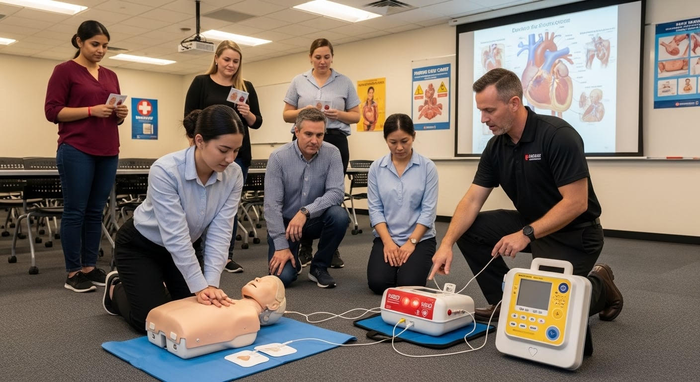 An AED does its best work when the people around it actually know what to do. That means recognising the signs of cardiac arrest. It means knowing how to call for help effectively. It means being able to start CPR immediately while someone else grabs the device. Confidence matters here — hesitation costs time, and time is the one thing you don’t have.